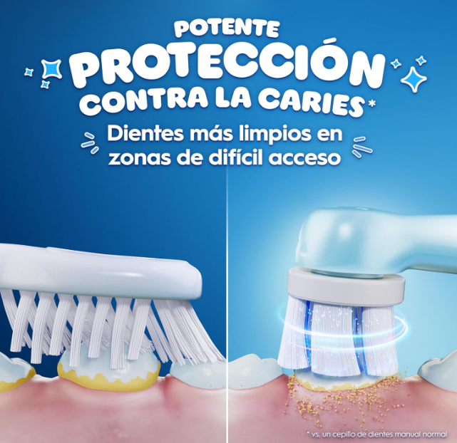 Además, el cabezal diseñado especialmente para niños ofrece filamentos ultrasuaves, ideales para bocas sensibles y en crecimiento.