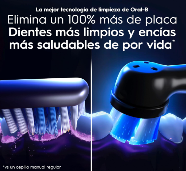 El paquete incluye un cabezal Ultimate Clean, diseñado para eliminar hasta un 100% más de placa bacteriana en comparación con un cepillo manual tradicional. Sus filamentos angulados alcanzan incluso los espacios más difíciles, garantizando una limpieza profunda.